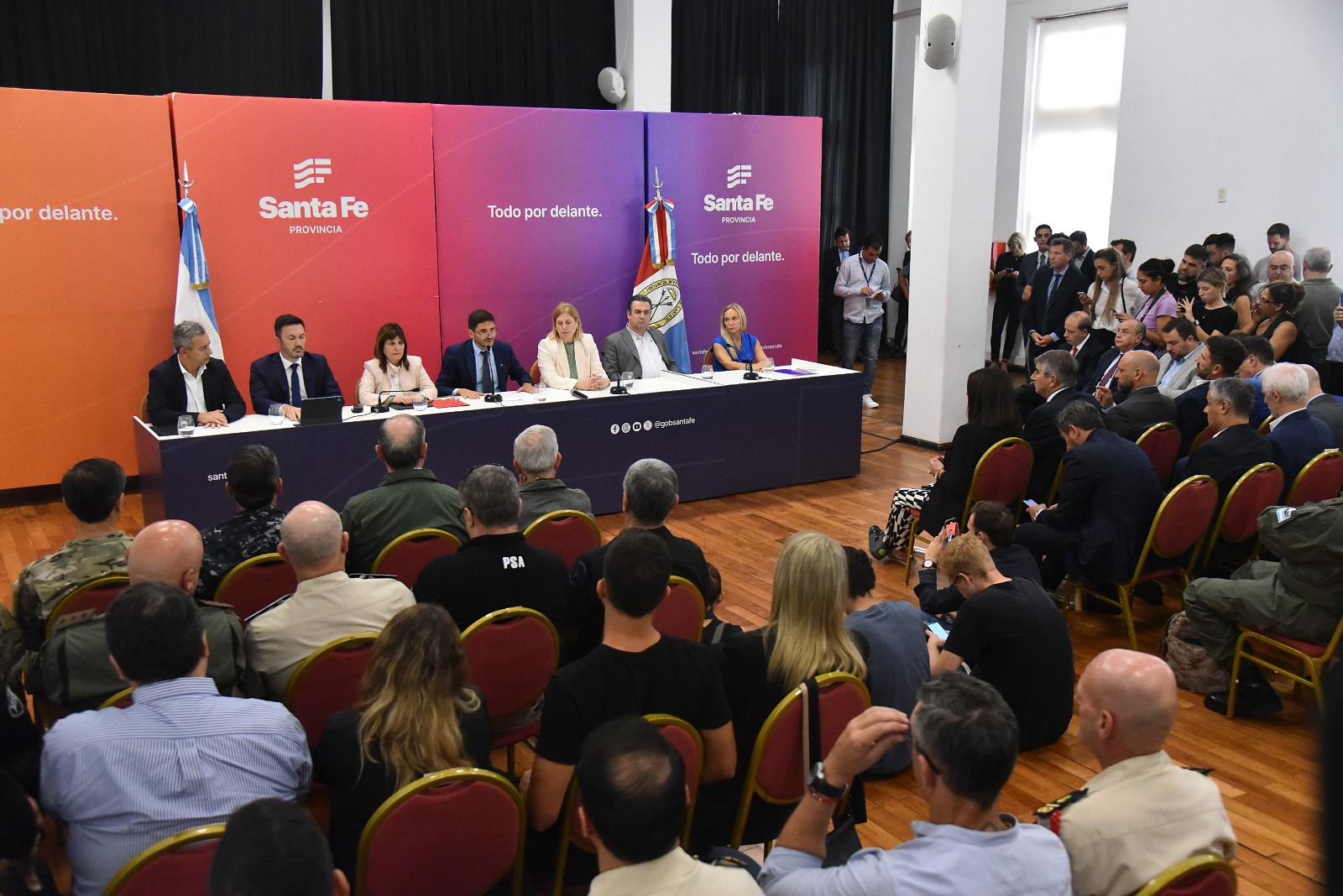 A continuación, el ministro de Defensa Luis Petri indicó: “La lucha contra el crimen organizado requiere que se articulen políticas entre nación, provincia y municipio. El Ministerio de Defensa y las Fuerzas Armadas van a realizar las tareas que se encomienden, para eso van a llegar personal de las Fuerzas Armadas, vehículos, logística y comunicaciones para posibilitar y auxiliar a las Fuerzas de Seguridad”.